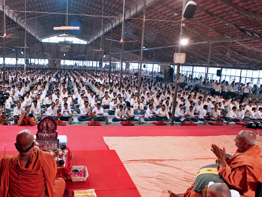 H.H. HariprasadSwamiji. There are more than 7000 initiated householder devotees called - ‘Ambrish’, who have determined to do social and cultural activities under the guidance of their Spiritual Master in the prime priority of their lives, with overcoming their worldly desires. Yogi Divine Society organizes monthly camps for ‘Ambrish’ devotees to provide them with spiritual guidance. H.H.HariprasadSwamiji travels to different regions for these devotees to conduct spiritual assemblies and camps, thereby providing guidance for a spiritual life. He personally counsels all those steeped in social problems, guiding them towards practical as well as spiritual solutions.