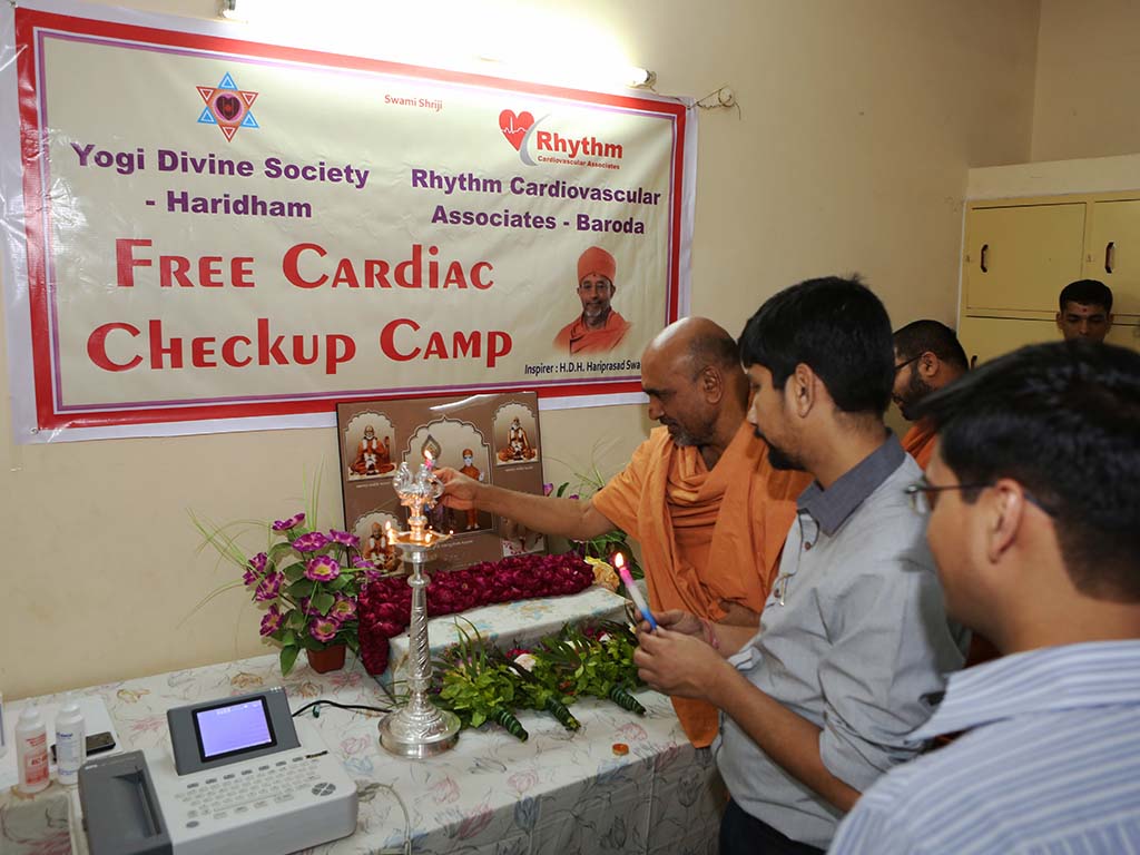મેડીકલ કેમ્પના બીજા તબક્કામાં તા. ૧-૨-૨૦૧૪ના રોજ યોગી ડીવાઈન સોસાયટી અને રીધમ કાર્ડિયો વાસ્ક્યુલર એસોસીએટ-વડોદરા દ્વારા એક દિવસીય કાર્ડિયાક ચેકઅપ કેમ્પનું આયોજન કરવામાં આવ્યું. કેમ્પનું ઉદઘાટન વડીલ સંતવર્ય પૂ. શાસ્ત્રીસ્વામીજી, પૂ. સંતવલ્લભસ્વામી તથા ડૉ. શ્રી બિરેનભાઈ ચૌહાણ (સર્વેશ્ર્વર હૉસ્પીટલ-વડોદરા) તથા ડૉ. શ્રી ચિરાગભાઈ શેઠ (રીધમ કાર્ડીયેક)ના હસ્તે દીપપ્રાગટ્ય કરવામાં આવ્યું. આ કેમ્પમાં હૃદયરોગની બિમારીની જાગ્રતતા માટે વિશેષ માર્ગદર્શન આપવામાં આવ્યું.